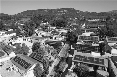 图为河北省平山县西柏坡镇北庄村兆瓦级“光储”智能微电网示范工程项目中的屋顶光伏发电板。新华社记者 杨世尧 摄